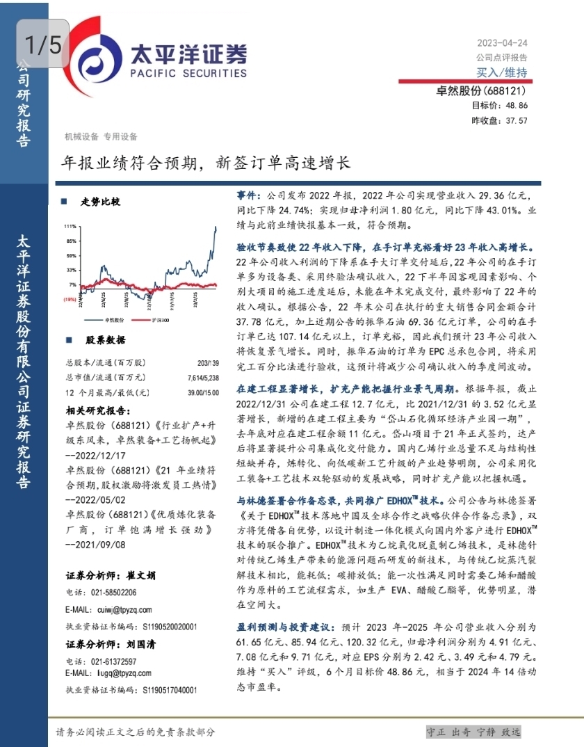 $卓然股份(SH688121)$ 看了券商研究员的报告,劳资笑了,孙子也笑了,韩非子更是笑的满地找假牙!