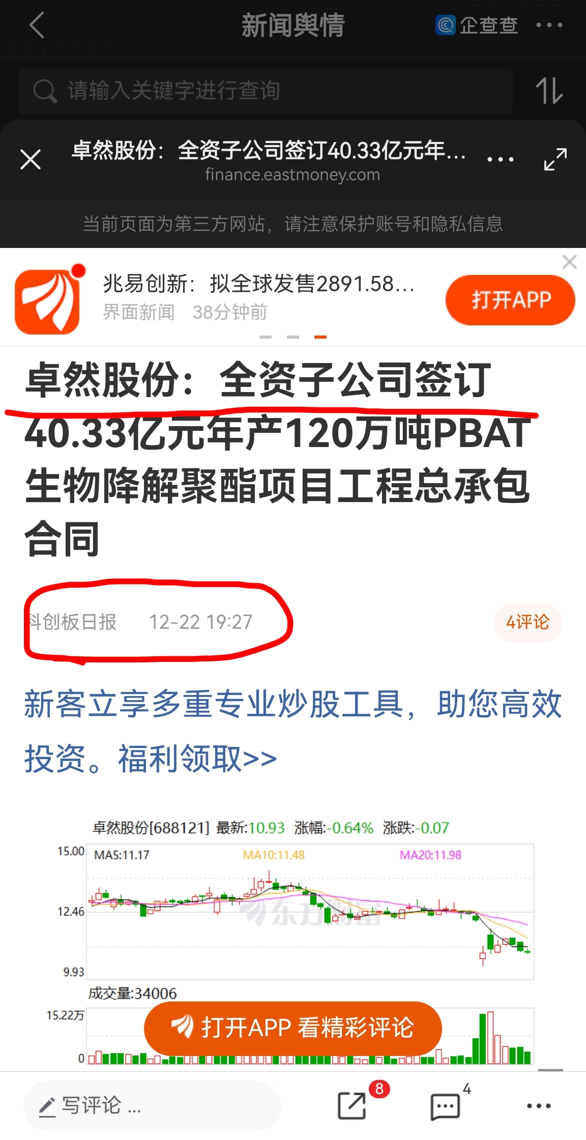 $卓然股份(SH688121)$
