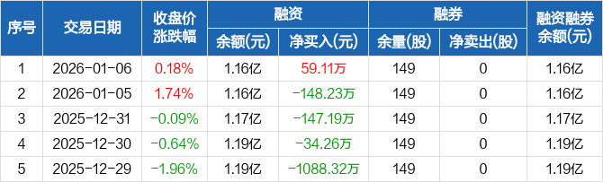卓然股份:融资净买入59.11万元,融资余额1.16亿元(01-06)