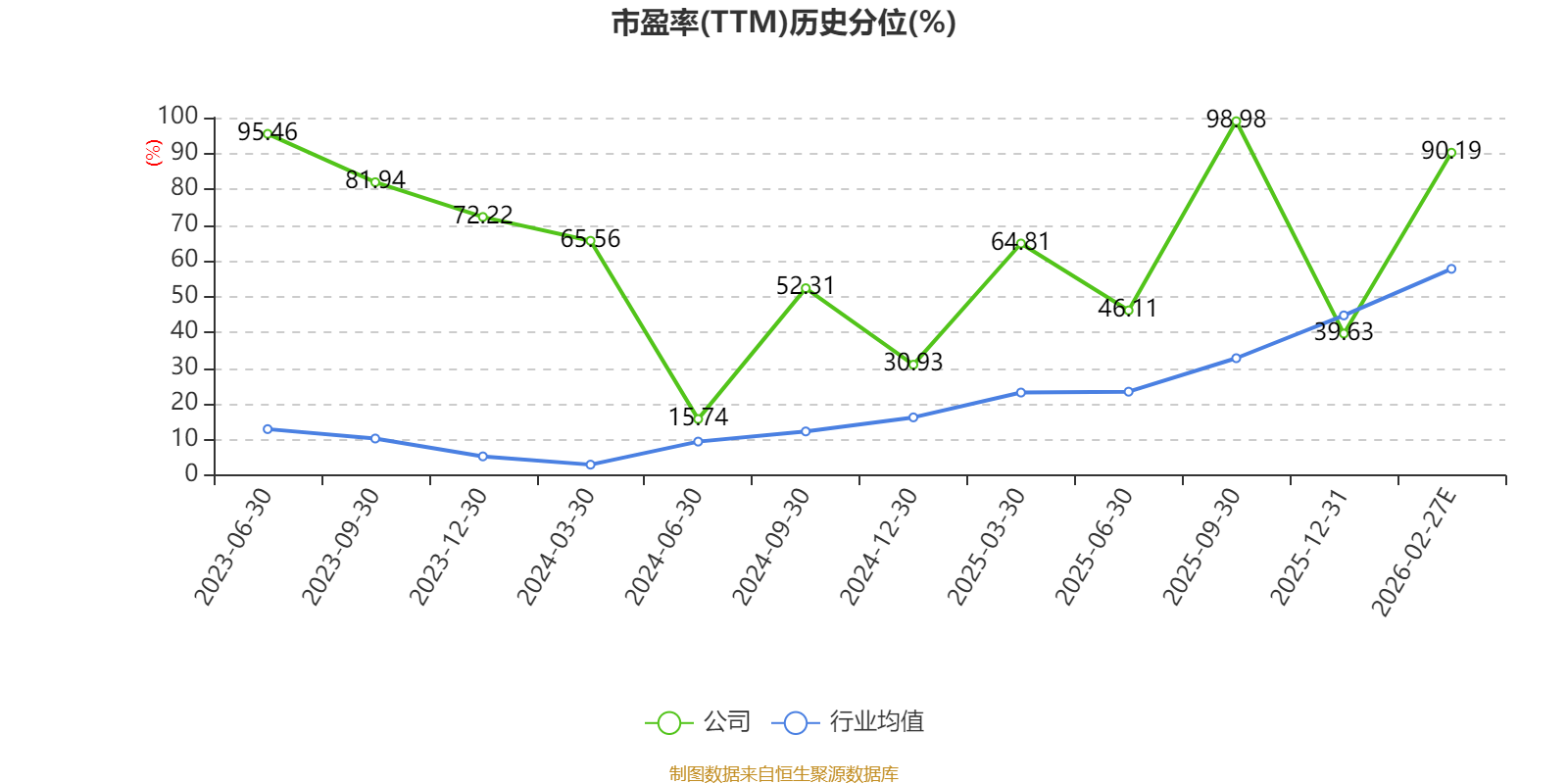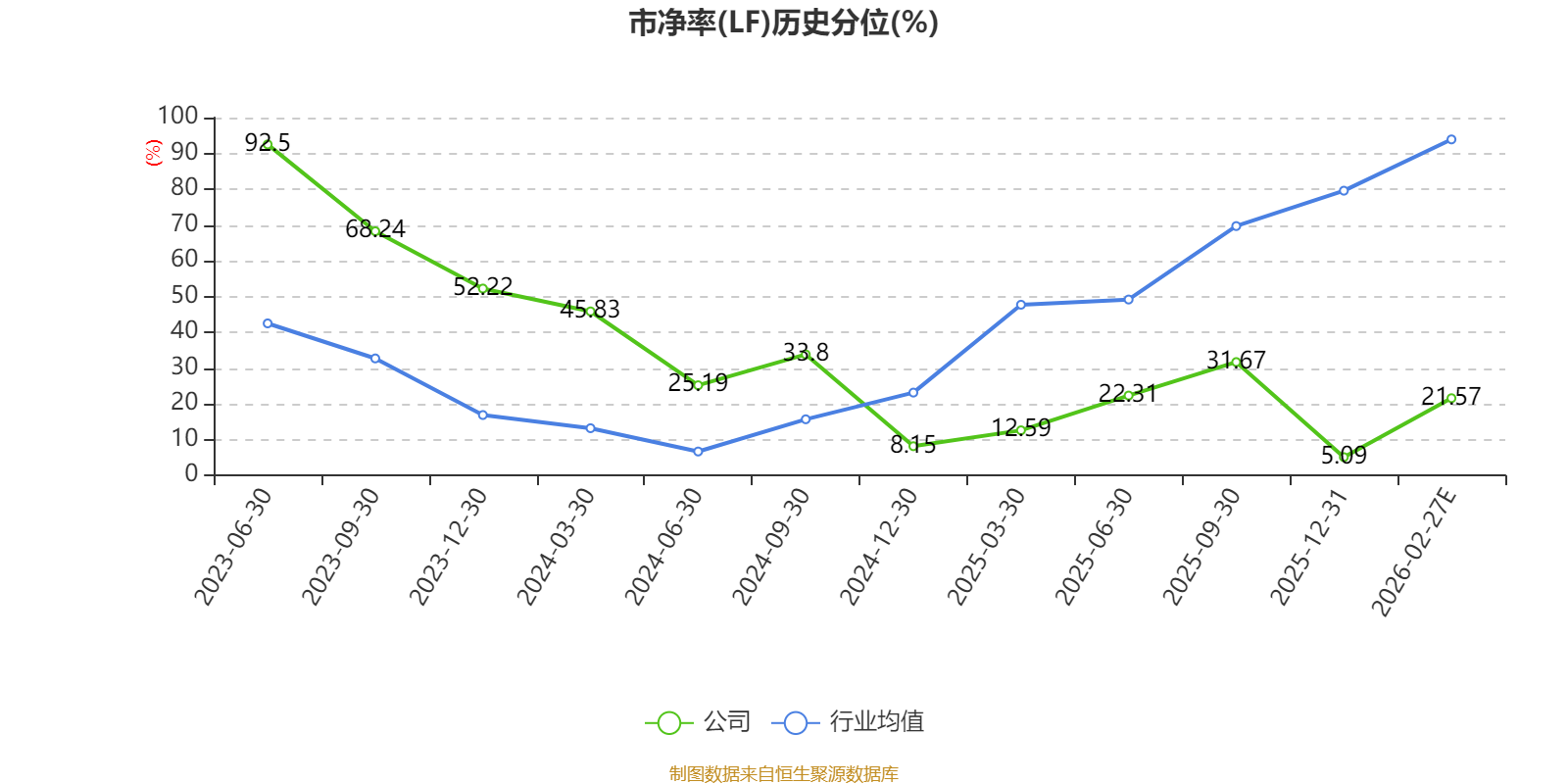 市盈率、市净率为负时,不显示当期分位数,会导致折线图中断。
