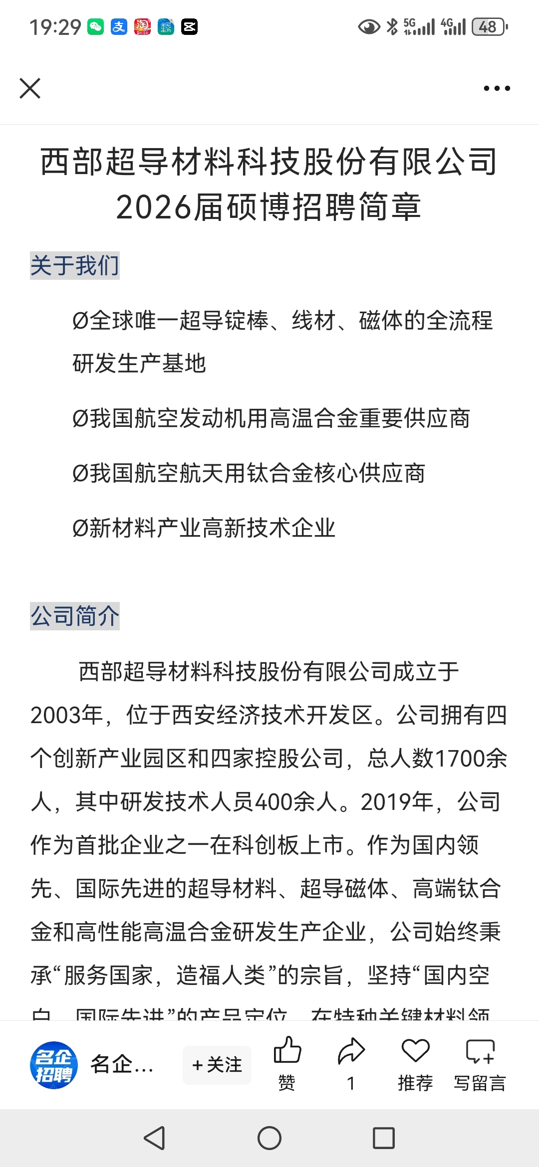 西部超导的一盘大棋,招聘员工是二金+12险,公司今后的发展会越来越快