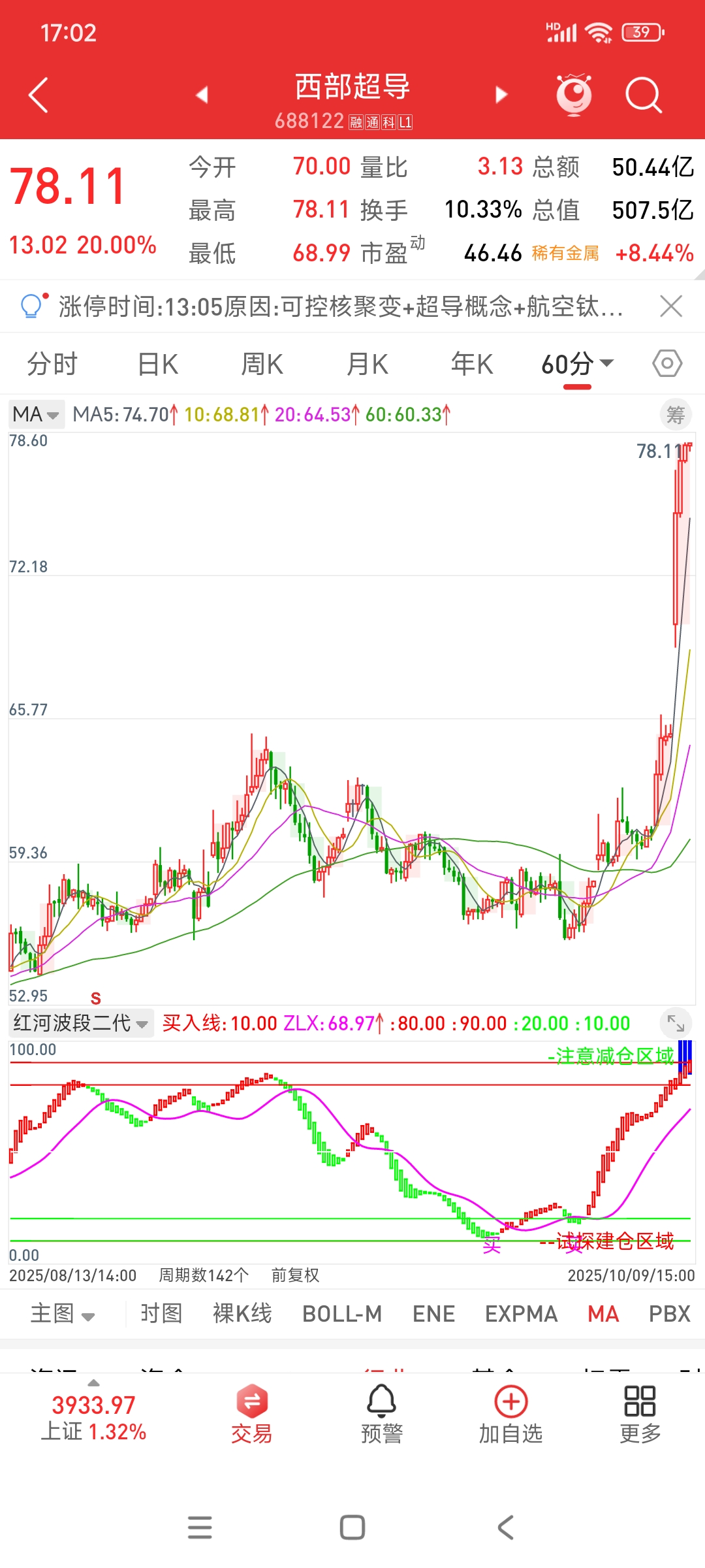日线60分钟绿柱转红柱以后一路上扬,红柱不停,上涨不止,红柱拉长,加速不止,继续