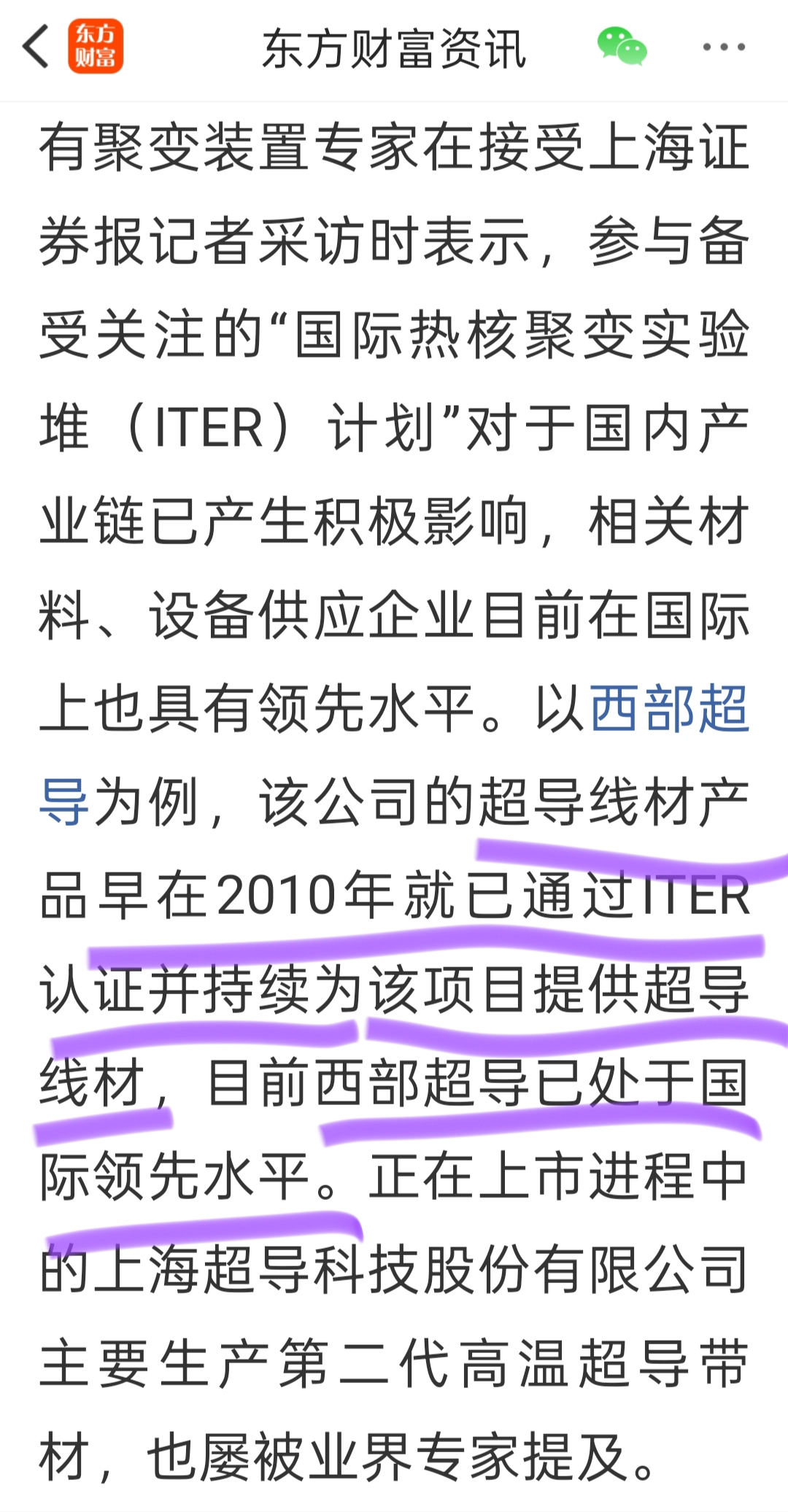 $西部超导(SH688122)$ 公司的超导线材产品早在2010年就已通过ITER认证并持续为该项目提供超导线材,目前西部超导已处于国际领先水平。