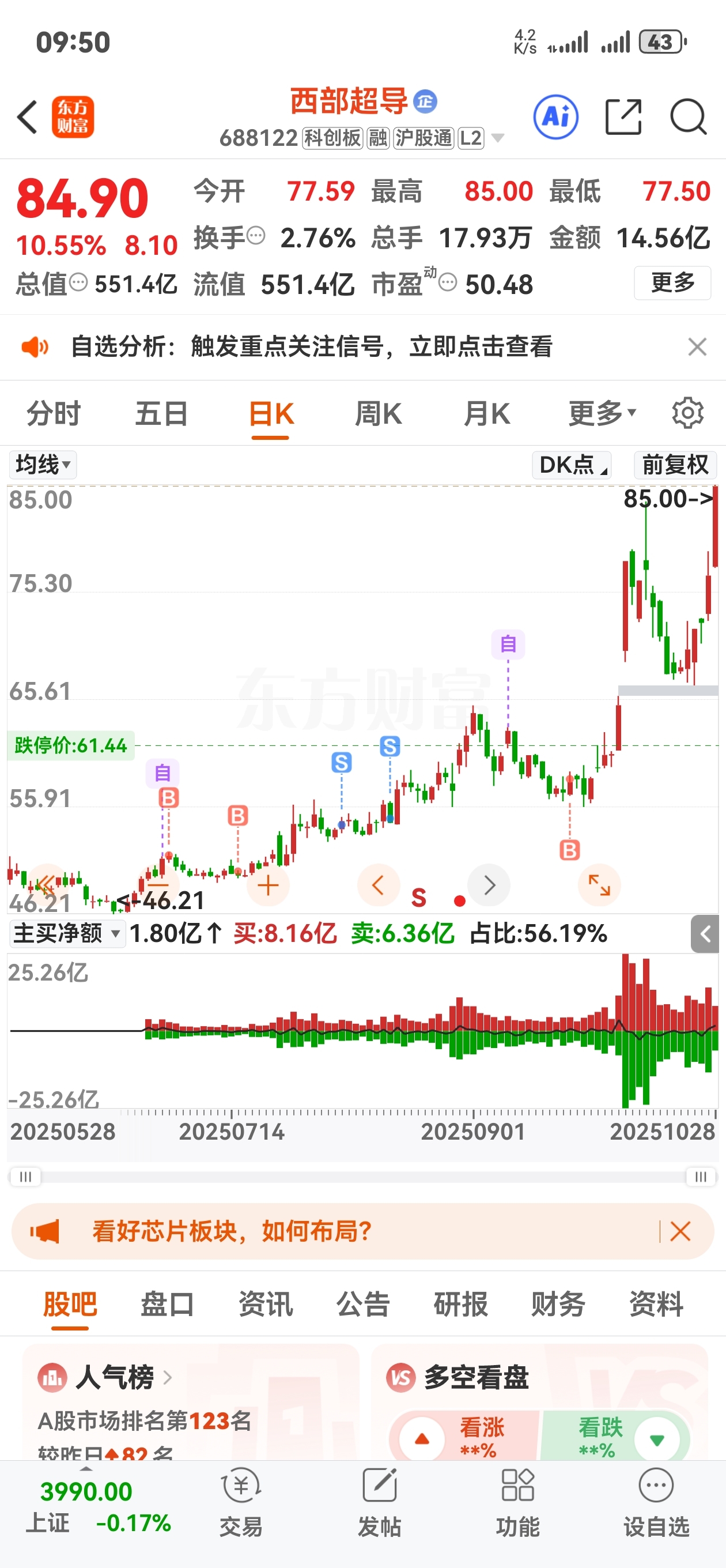 $西部超导(SH688122)$ 堵你是三位数的个股,所以打算短期谈一谈恋爱!