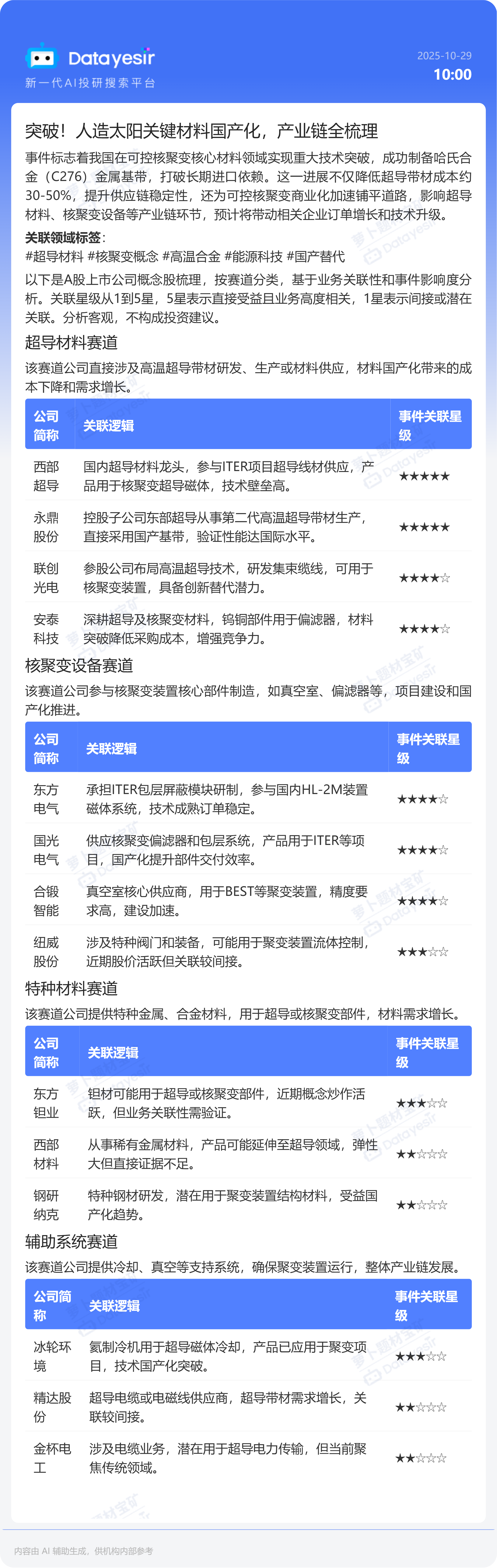 突破!人造太阳关键材料国产化,产业链全梳理