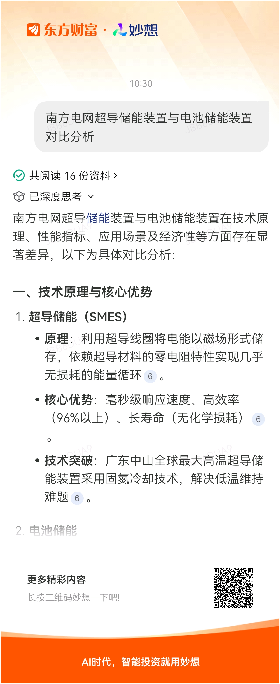 妙想一下:南方电网超导储能装置与电池储能装置对比分析南方电网超导储能计划11月投