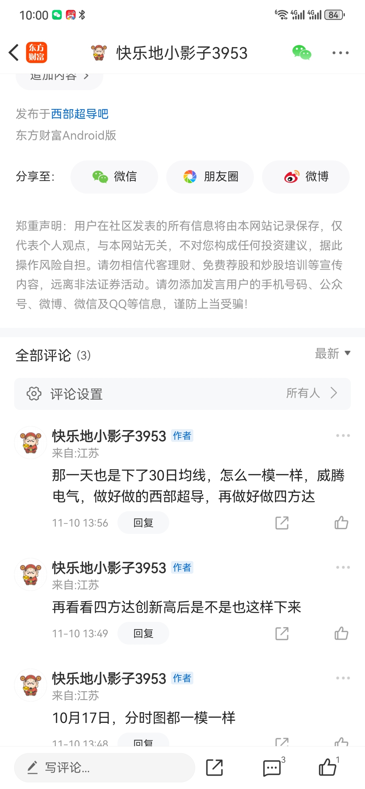 温馨提示: 1.根据《证券法》规定,禁止编造、传播虚假信息或者误导性信息,扰乱证券市场;2.用户在本社区发表的所有资料、言论等仅代表个人观点,与本网站立场无关,不对您构成任何投资建议。用户应基于自己的独立判断,自行决定证券投资并承担相应风险。《东方财富社区管理规定》