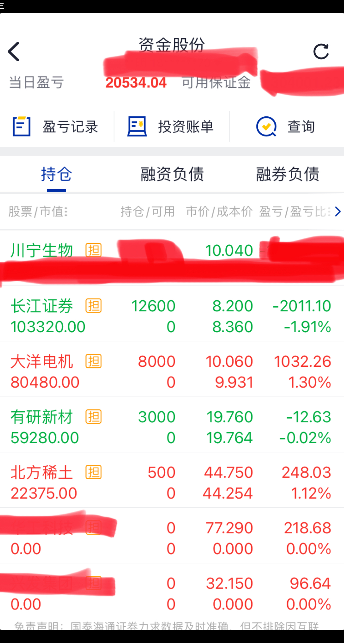 交流一下,,,老牛收盘单,,,现在6.5成仓,没融资,,,在水下8块买长江证下了单又拆了,胆弄小了,,,总的今天又没亏,,,今天操作打七十分左右不算很好,,,明天,操作计划,川宁继续作压仓石不翻倍不动,,,,其他的动动过手瘾,,,,