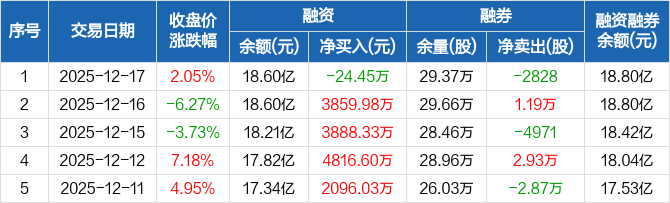 西部超导:融资净偿还24.45万元,融资余额18.6亿元(12-17)