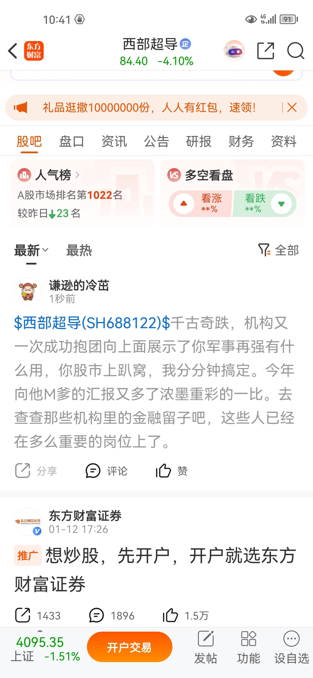 温馨提示: 1.根据《证券法》规定,禁止编造、传播虚假信息或者误导性信息,扰乱证券市场;2.用户在本社区发表的所有资料、言论等仅代表个人观点,与本网站立场无关,不对您构成任何投资建议。用户应基于自己的独立判断,自行决定证券投资并承担相应风险。《东方财富社区管理规定》