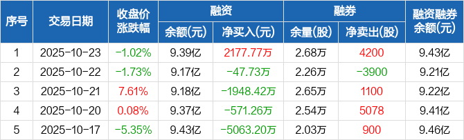 聚辰股份:融资净买入2177.77万元,融资余额9.39亿元(10-23)