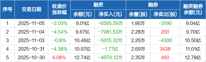聚辰股份:连续6日融资净偿还累计4.79亿元(11-05)