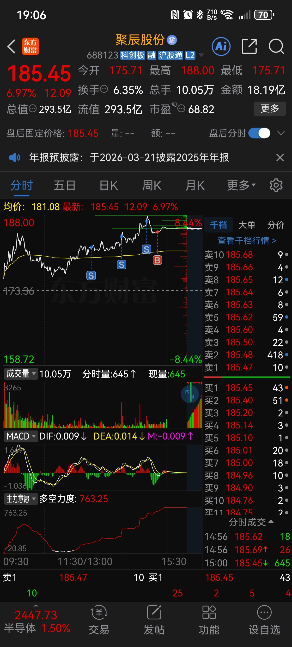 $聚辰股份(SH688123)$ 尾盘184买回来200股做个纪念,今天美股盘前又大涨,我应该是卖飞了