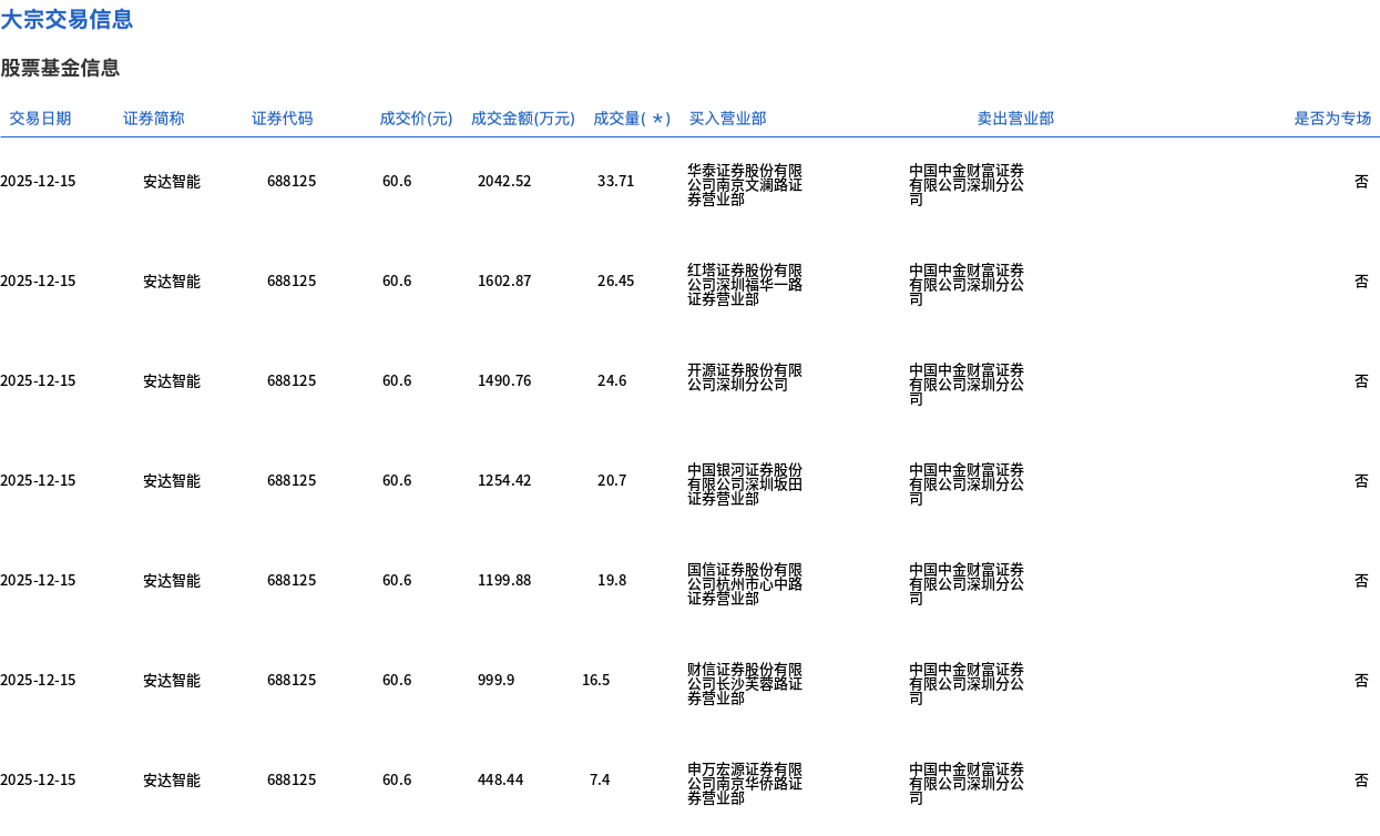 安达智能今日大宗交易折价成交149.16万股,成交额9038.79万元