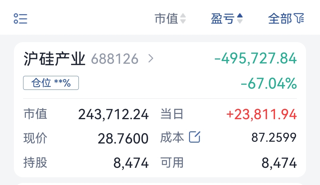 $沪硅产业(SH688126)$ 亏损严重,拿了好多年,我都一度放弃了,从原来重仓到轻仓观望,这一波上涨都没反应过来,我以为要成仙股了呢,乌龟也跑起来了!害!可惜可惜,没有好的加仓点,也许回不了本了。