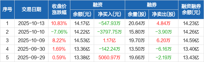 沪硅产业:融资净偿还547.93万元,融资余额14.17亿元(10-13)