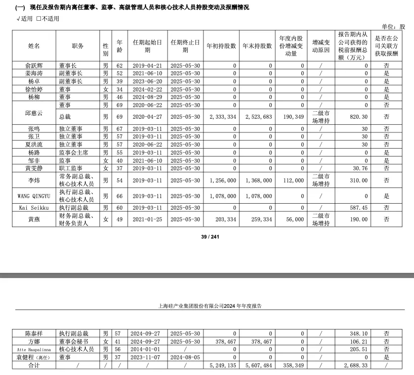 $沪硅产业(SH688126)$ 这么多董事和高管都不在上市公司领工资的吗?难怪做事情拖拖拉拉、公司股价业绩都萎靡不振的
