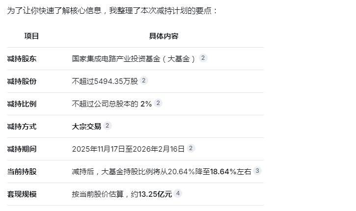 大基金发布了减持公告,在11月到2026年2月通过大宗交易减持2%的股份,这些股