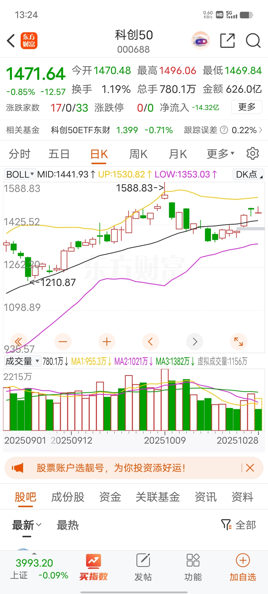 技术分析:科创50指数在选择先补上方缺口,还是先补下方缺口的选择过程中出现了两难