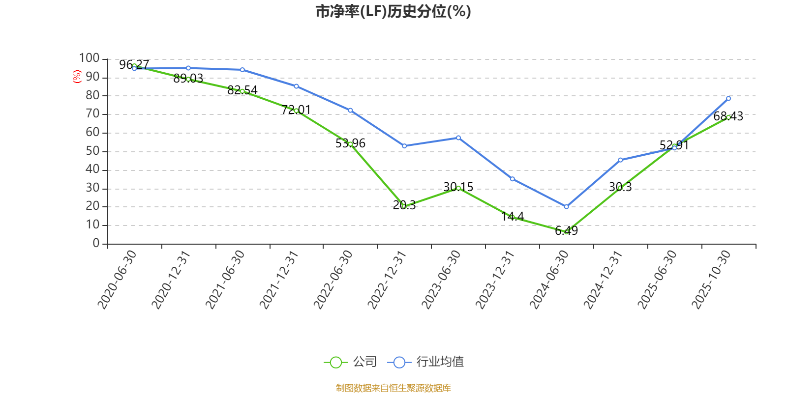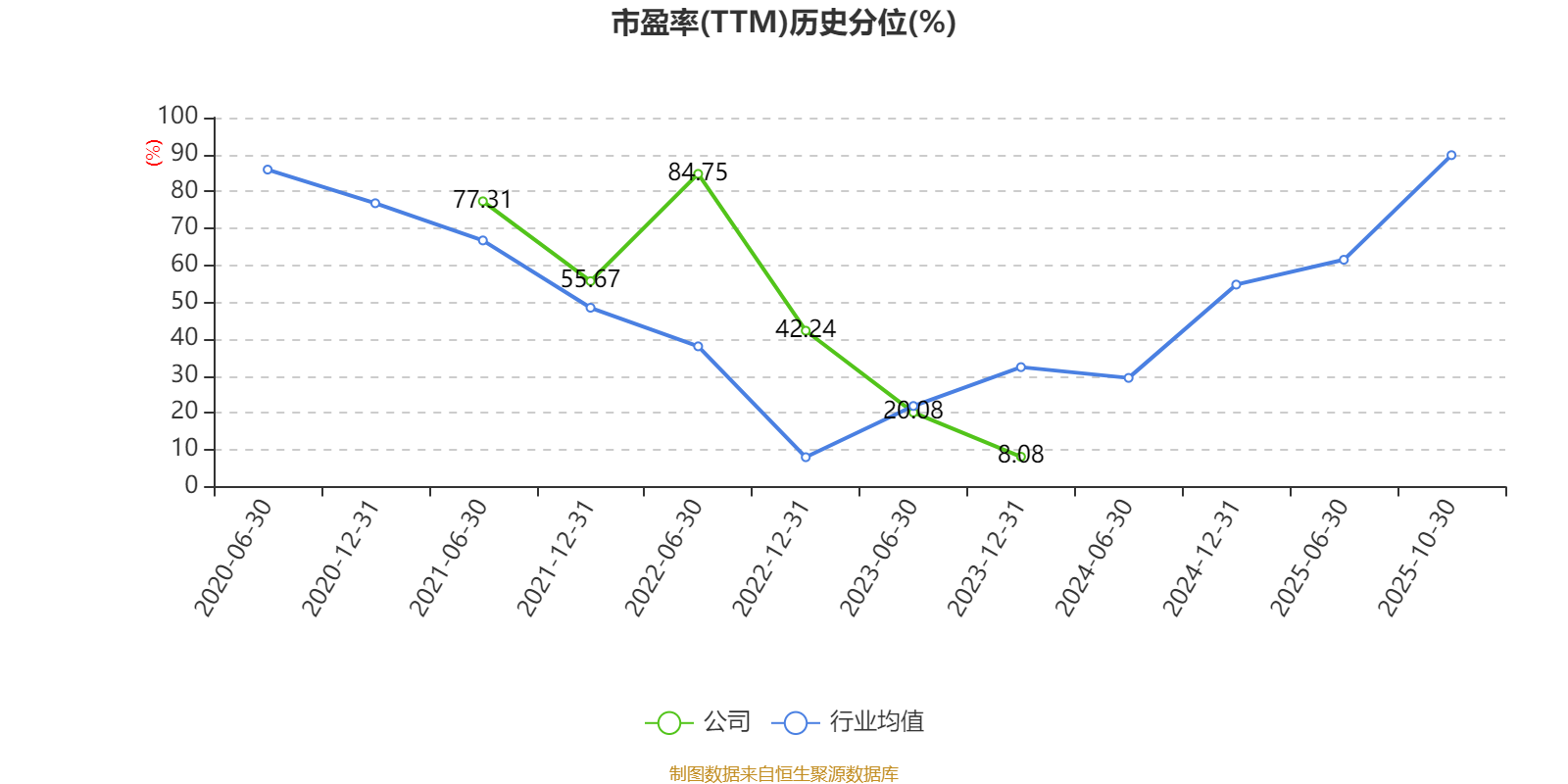 市盈率、市净率为负时,不显示当期分位数,会导致折线图中断。