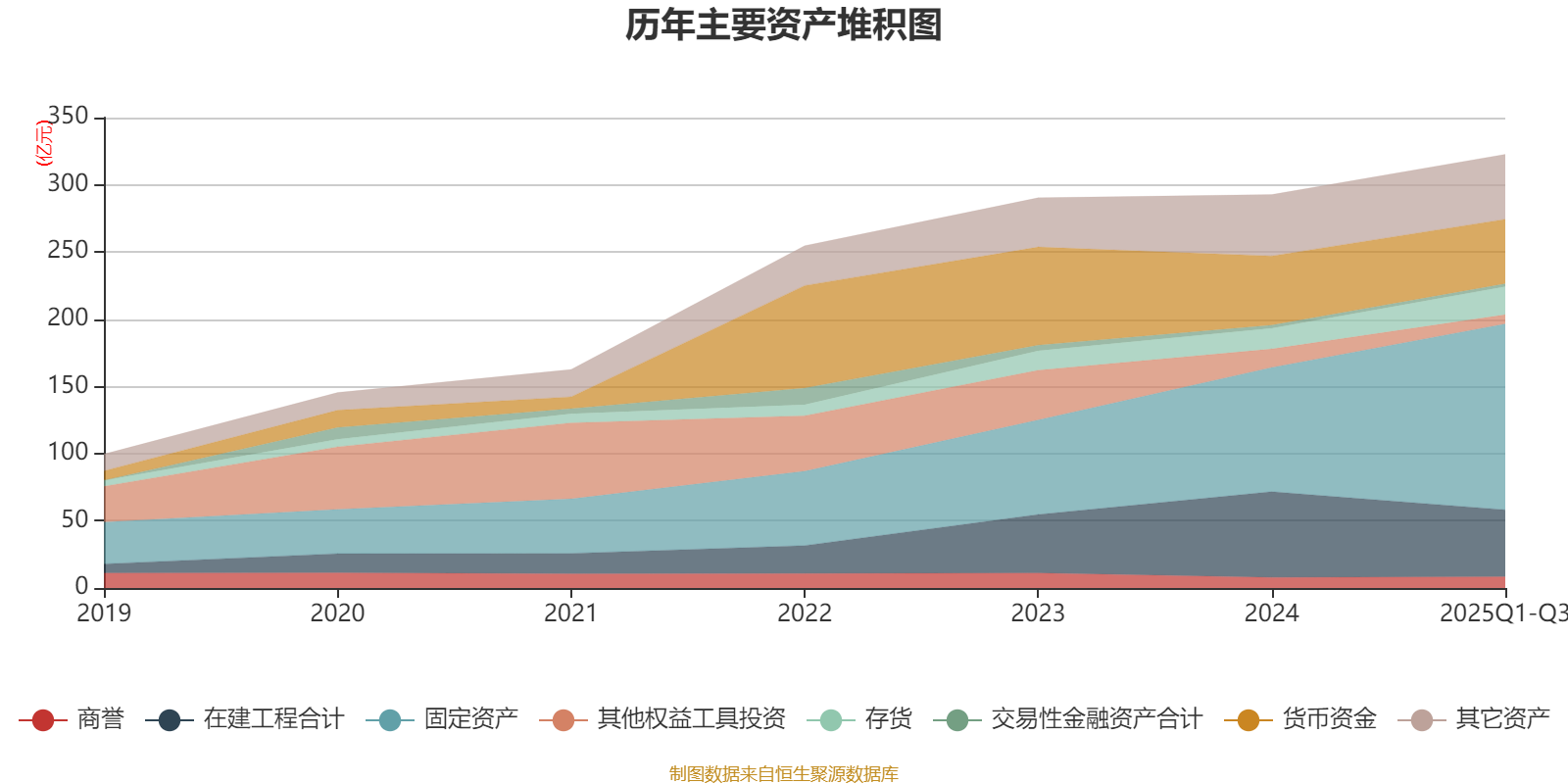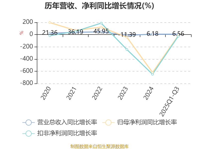 资产重大变化方面,截至2025年三季度末,公司固定资产较上年末增加49.67%,占公司总资产比重上升11.3个百分点;在建工程合计较上年末减少21.93%,占公司总资产比重下降6.36个百分点;货币资金较上年末减少6.86%,占公司总资产比重下降2.73个百分点;其他权益工具投资较上年末减少50.54%,占公司总资产比重下降2.59个百分点。