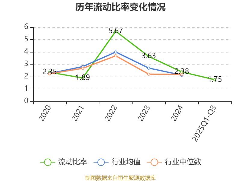 2025年前三季度,公司流动比率为1.75,速动比率为1.36。