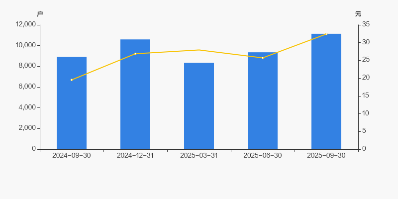 2024年9月30日至今,公司股东户数显著增长,区间涨幅为24.93%。2024年9月30日至2025年9月30日区间股价上涨66.10%。