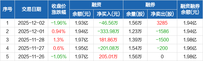 中国电研:融资净偿还46.56万元,融资余额1.93亿元(12-02)