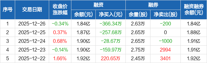 中国电研:连续4日融资净偿还累计812.66万元(12-26)