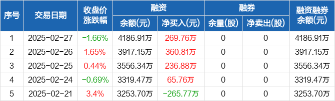 晶华微:连续4日融资净买入累计933.21万元(02-27)