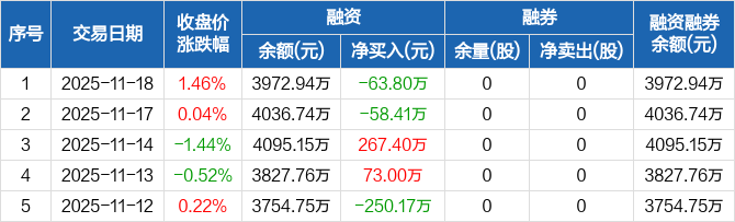 晶华微:融资净偿还63.8万元,融资余额3972.94万元(11-18)