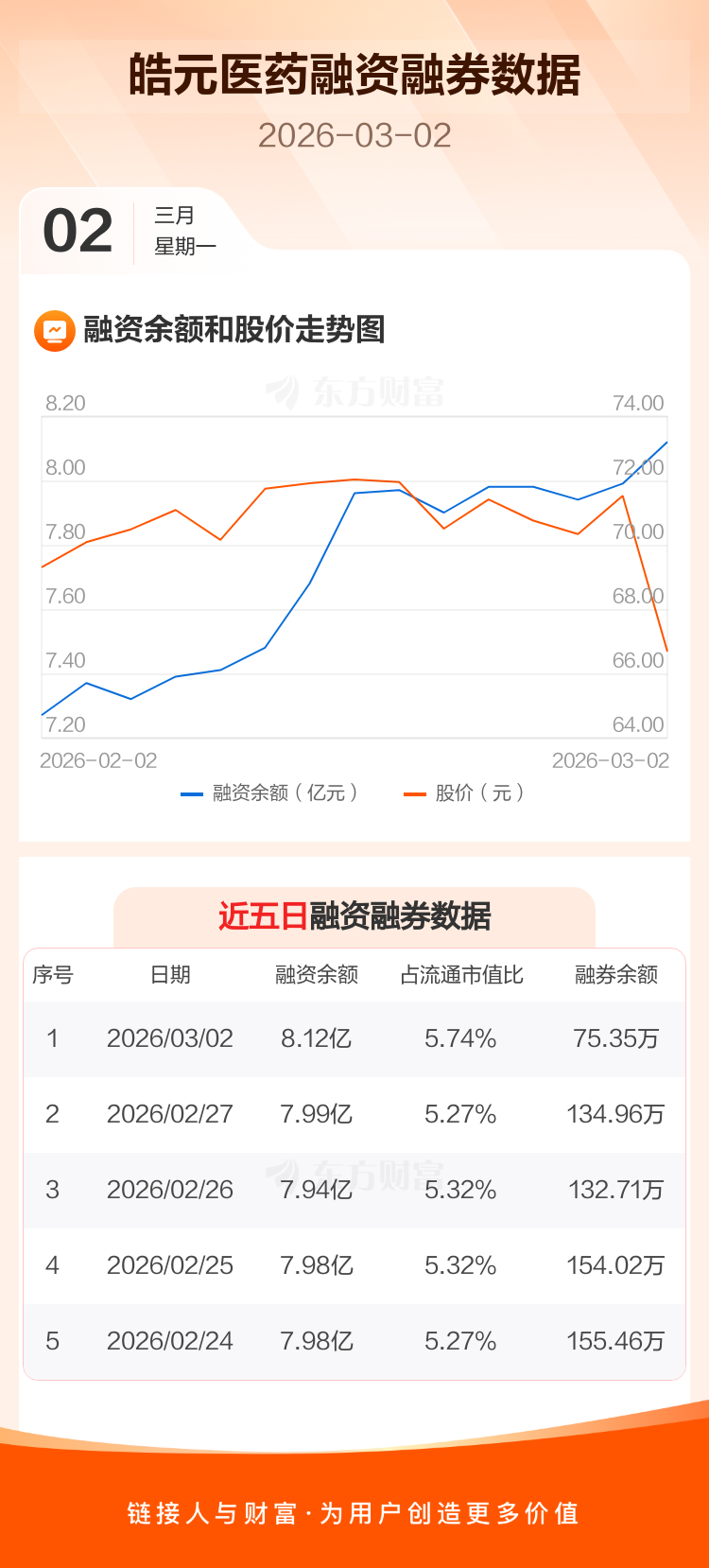 交易所最新数据显示,皓元医药于2026年3月2日获融资买入5983.40万元,融资偿还4727.53万元,当日融资净买入1255.87万元。目前,该股融资余额8.12亿,占流通市值比例为5.74%。