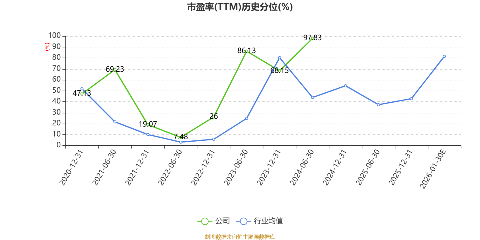 市盈率、市净率为负时,不显示当期分位数,会导致折线图中断。