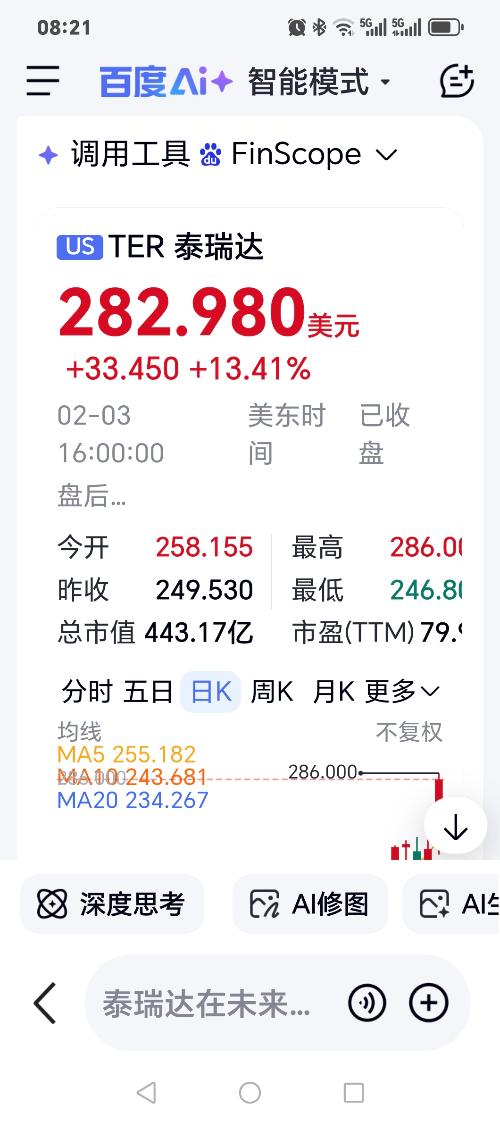 美股芯片测试龙头 泰瑞达 大涨