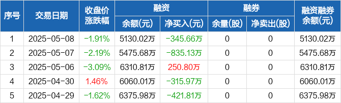 科兴制药:融资净偿还345.66万元,融资余额5130.02万元(05-08)
