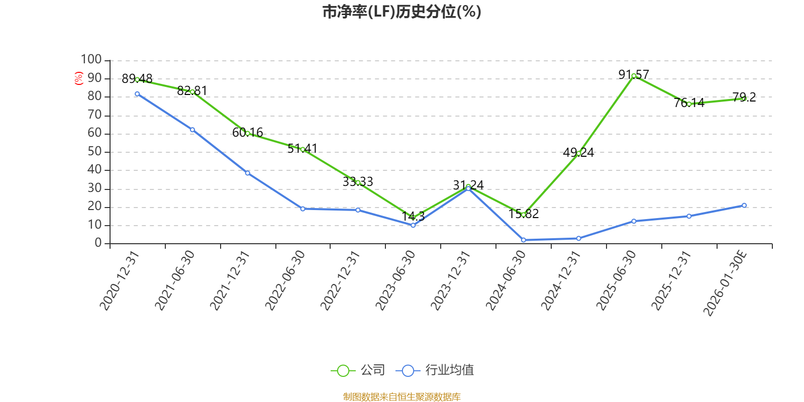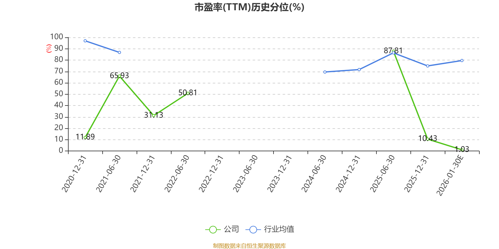 市盈率、市净率为负时,不显示当期分位数,会导致折线图中断。