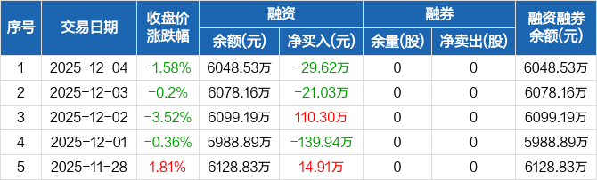近岸蛋白:融资净偿还29.62万元,融资余额6048.53万元(12-04)