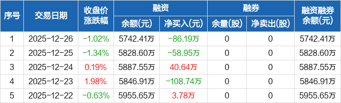 近岸蛋白:融资净偿还86.19万元,融资余额5742.41万元(12-26)