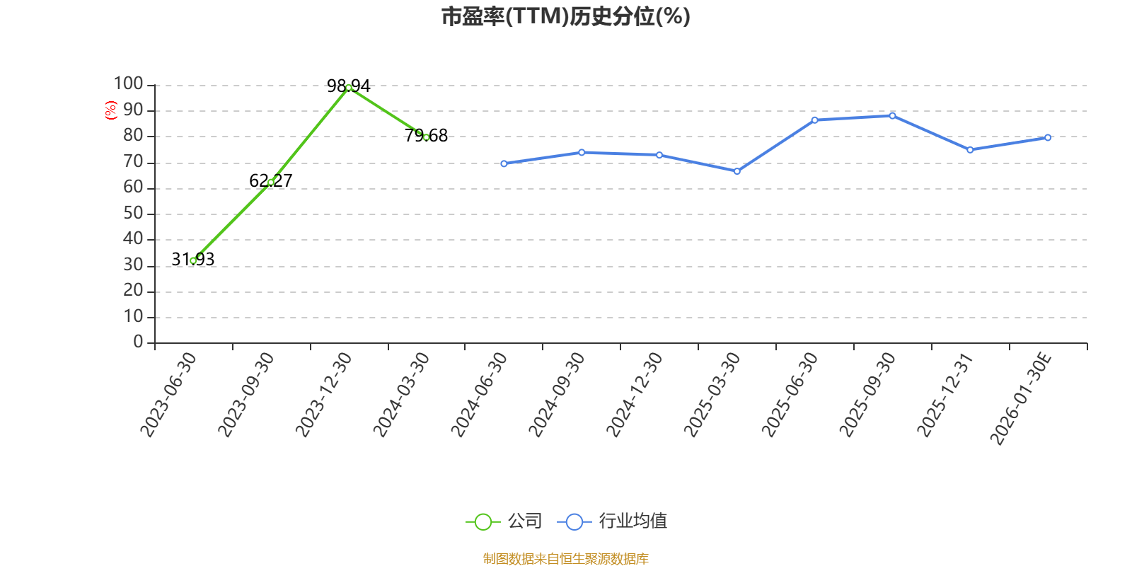 市盈率、市净率为负时,不显示当期分位数,会导致折线图中断。