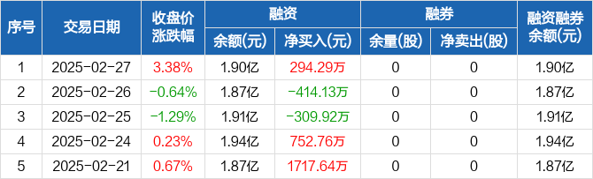 清溢光电:融资净买入294.29万元,融资余额1.9亿元(02-27)
