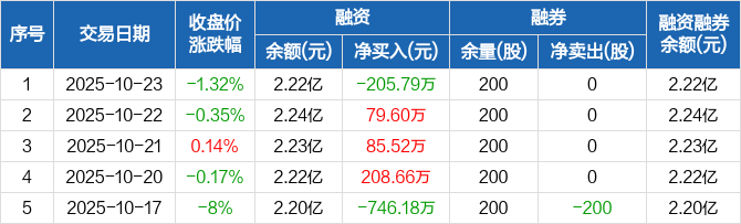 清溢光电:融资净偿还205.79万元,融资余额2.22亿元(10-23)