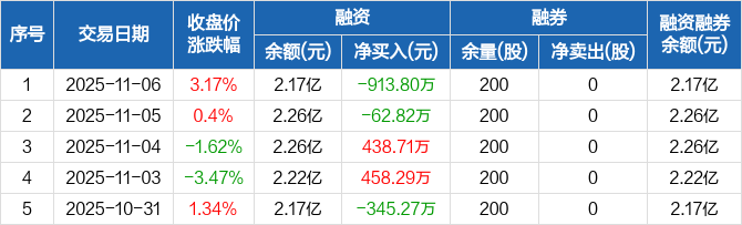 清溢光电:融资净偿还913.8万元,融资余额2.17亿元(11-06)