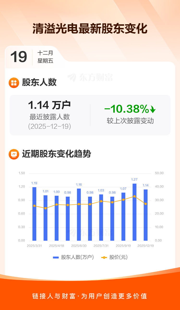 清溢光电:截至12月19日最新股东户数1.14万户,较上期减少10.38%