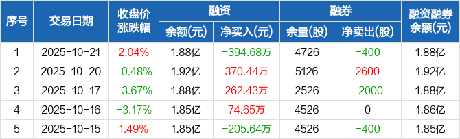 中船特气:融资净偿还394.68万元,融资余额1.88亿元(10-21)