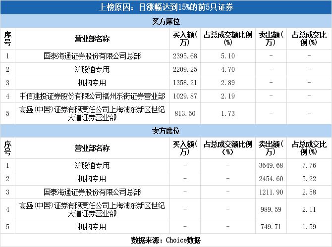 多主力现身龙虎榜,中船特气上涨15.71%(10-28)