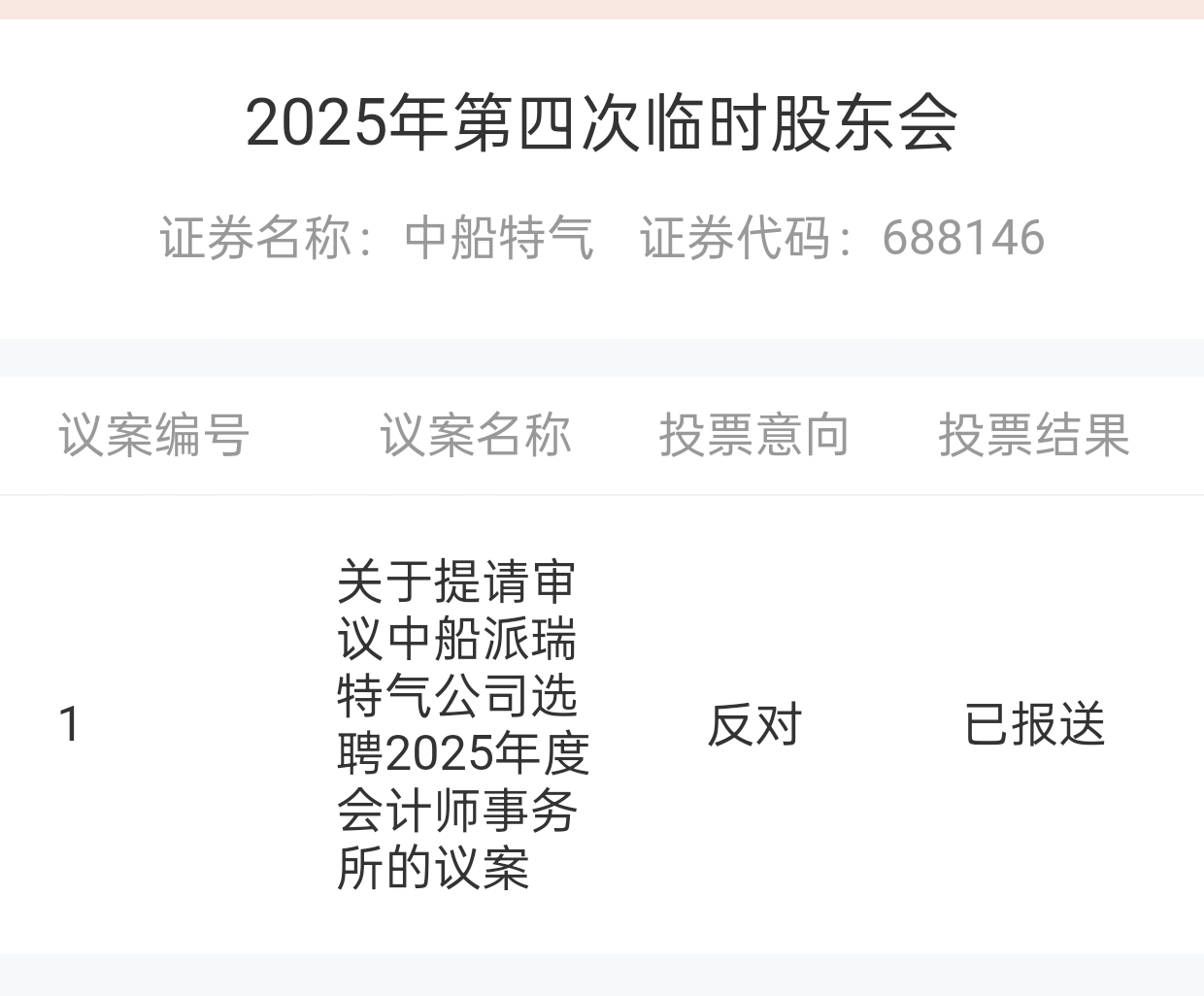 $中船特气(SH688146)$ 投了反对票,虽然数量不多$固态电池(BK0968)$ $氟化工(BK0690)$