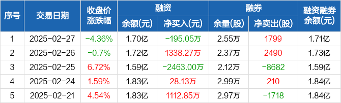 微导纳米:融资净偿还195.05万元,融资余额1.7亿元(02-27)