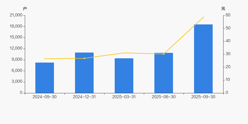2024年9月30日至今,公司股东户数成倍增长,区间涨幅达125.42%。2024年9月30日至2025年9月30日区间股价上涨121.28%。