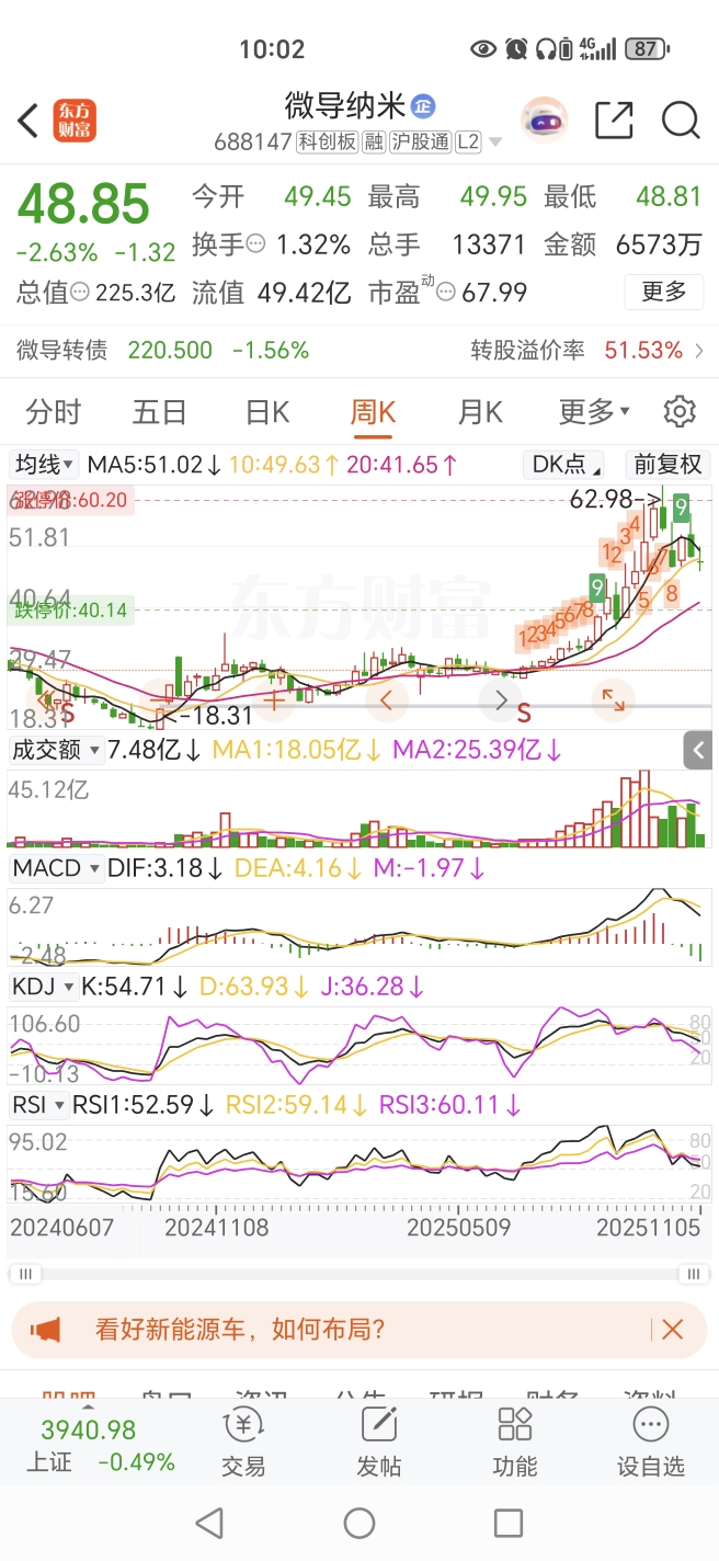$微导纳米(SH688147)$ 周线破10日线了,短期无望