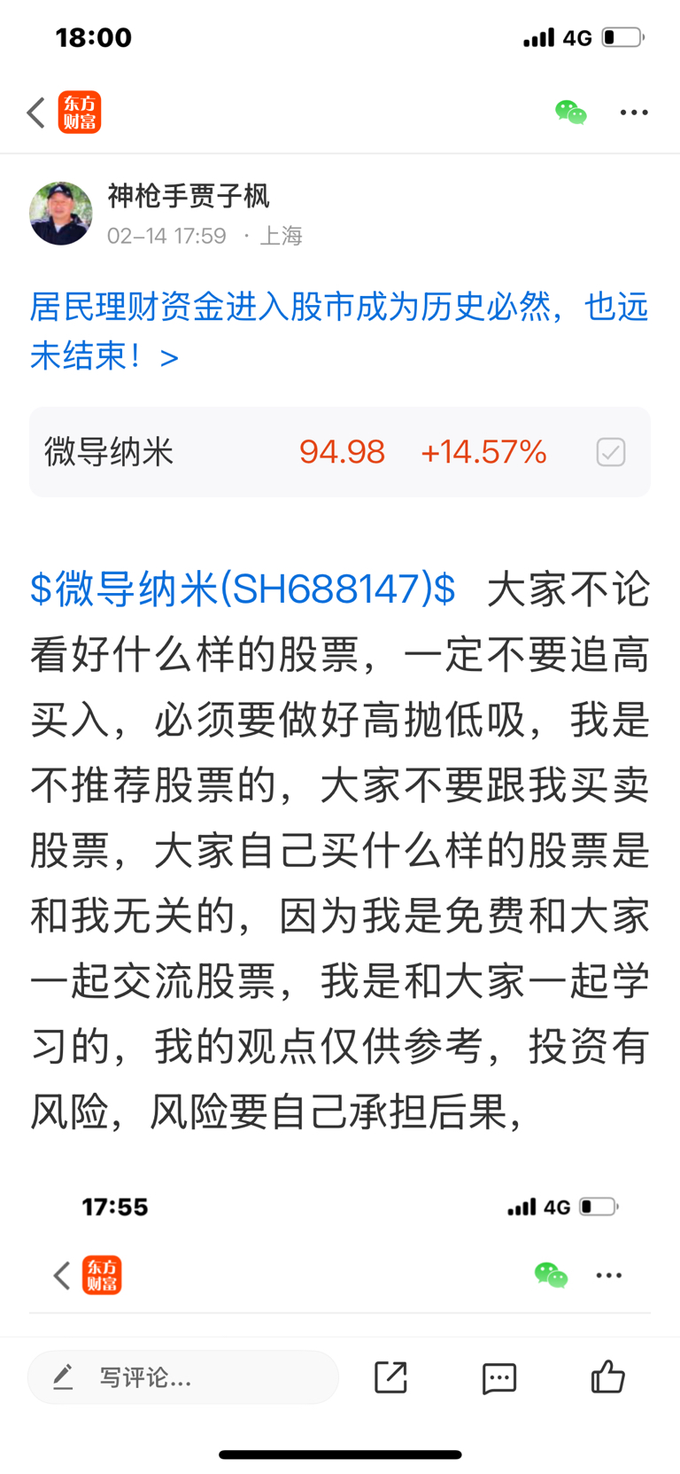 温馨提示: 1.根据《证券法》规定,禁止编造、传播虚假信息或者误导性信息,扰乱证券市场;2.用户在本社区发表的所有资料、言论等仅代表个人观点,与本网站立场无关,不对您构成任何投资建议。用户应基于自己的独立判断,自行决定证券投资并承担相应风险。《东方财富社区管理规定》